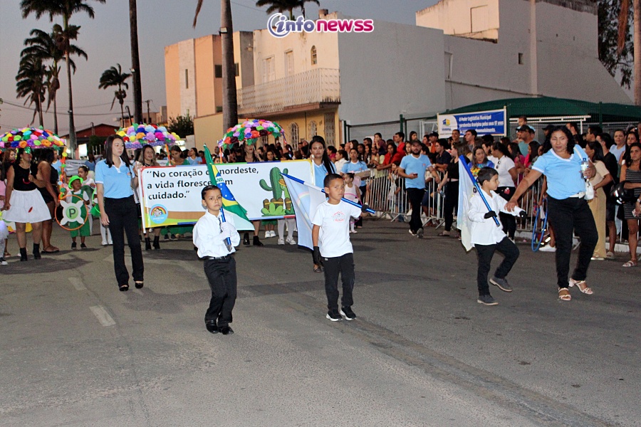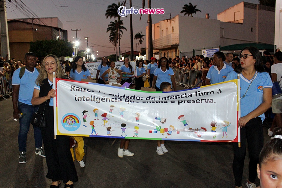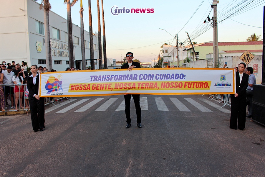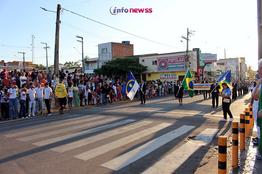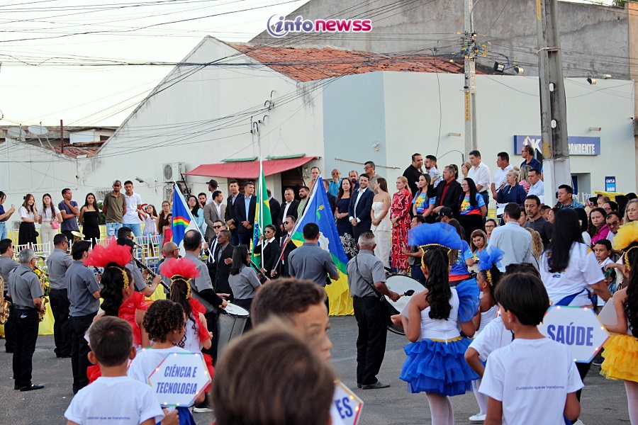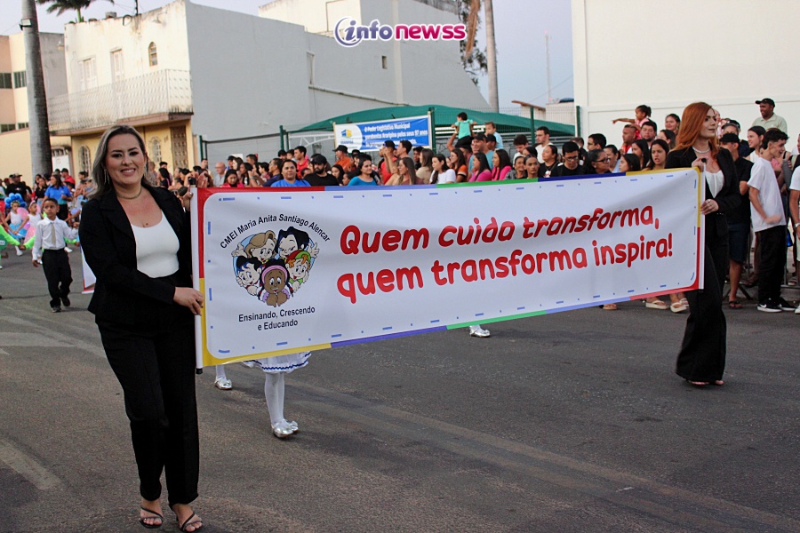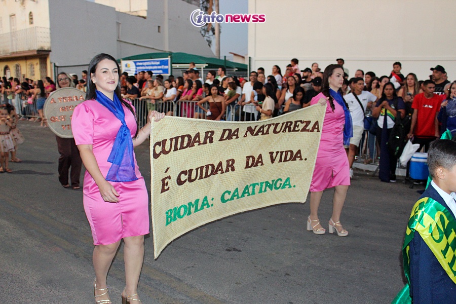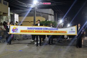 Com o tema “Transformar com cuidado: nossa gente, nossa terra, nosso futuro”, o desfile reuniu milhares de pessoas pelas ruas e avenidas principais da cidade, que acompanharam atentamente o espetáculo protagonizado por escolas municipais e particulares, clubes de serviço, entidades representativas, além de bandas marciais do próprio município, de cidades vizinhas e até de estados como Piauí e Ceará.