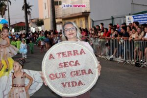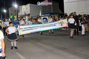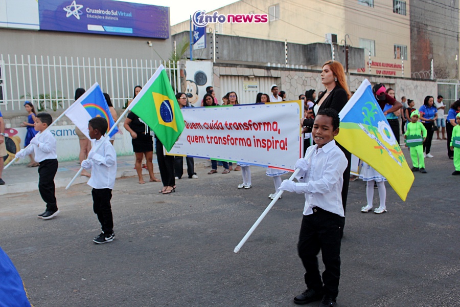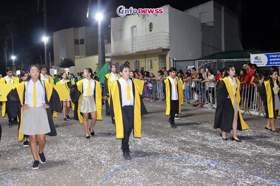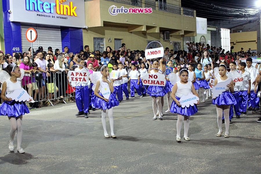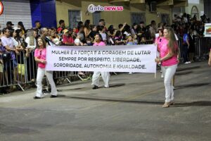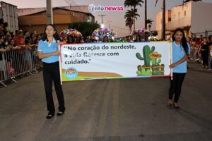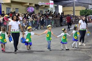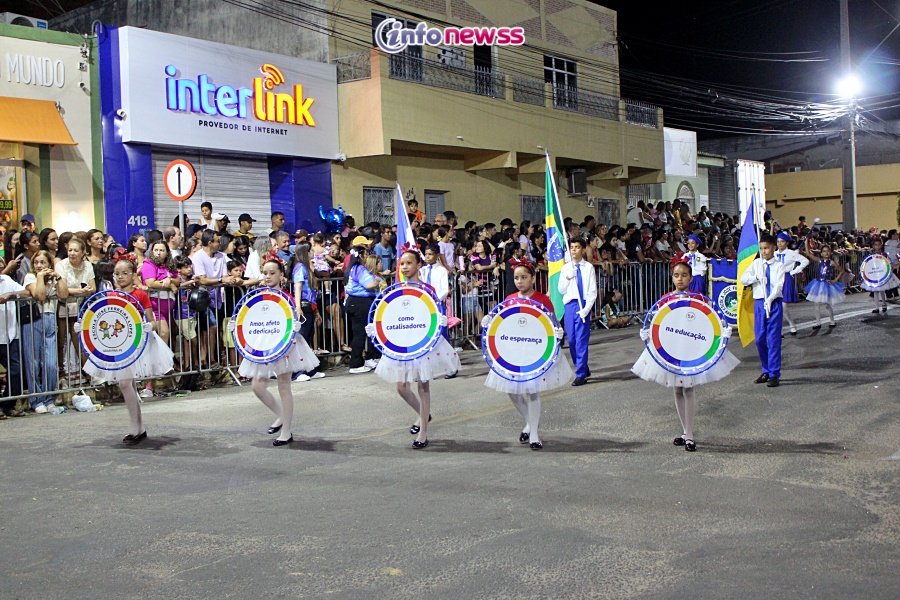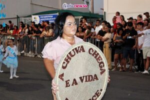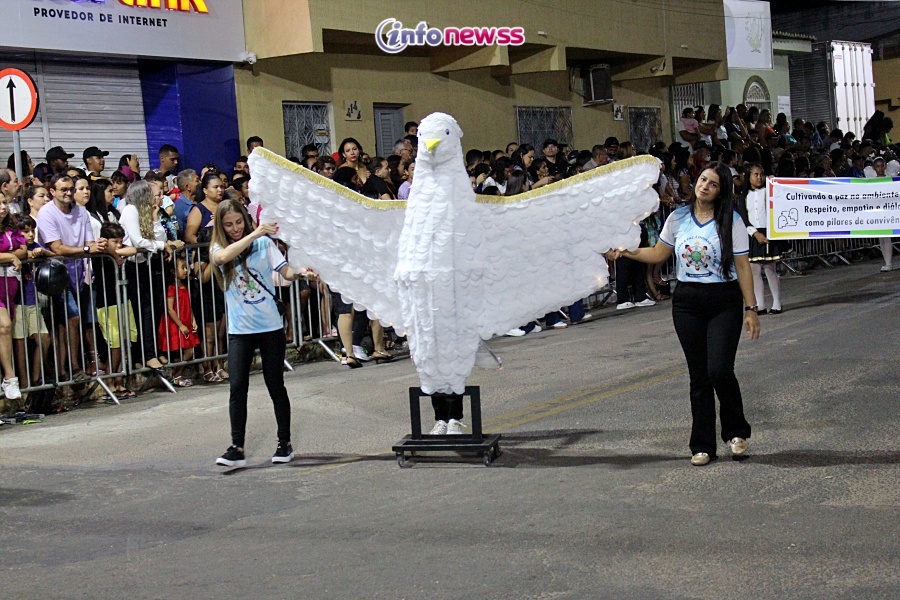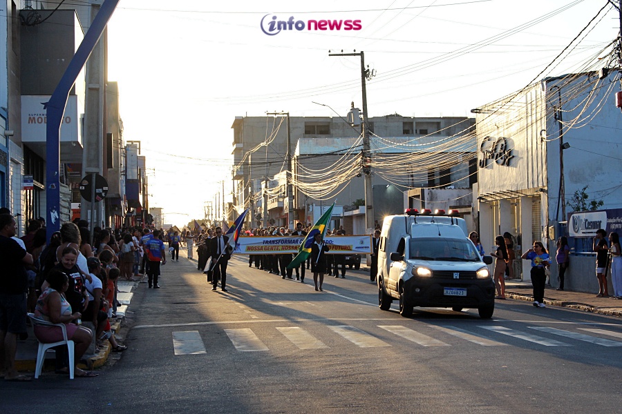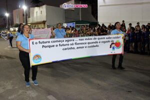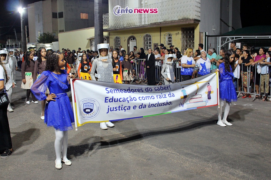 Com o tema “Transformar com cuidado: nossa gente, nossa terra, nosso futuro”, o desfile reuniu milhares de pessoas pelas ruas e avenidas principais da cidade, que acompanharam atentamente o espetáculo protagonizado por escolas municipais e particulares, clubes de serviço, entidades representativas, além de bandas marciais do próprio município, de cidades vizinhas e até de estados como Piauí e Ceará.