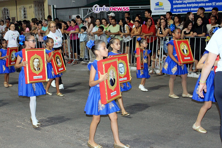 A secretária municipal de Educação, Ana Raquel Cantarelli, avaliou o desfile de forma extremamente positiva e destacou o esforço coletivo para o sucesso do evento. “Este desfile foi pensado com muito carinho, trazendo temas importantes e necessários como educação, inovação, currículo, saúde mental e representatividade local. Durante semanas, realizamos reuniões preparatórias com todas as escolas e secretarias, além de levar a programação para os distritos, garantindo que toda a população pudesse se sentir parte desta grande celebração. O resultado foi emocionante e mostra que Araripina tem um futuro promissor.” Disse.