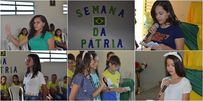 Culminando a Semana foram realizados momentos cívicos, como apresentações de danças, coreografias, paródias e poemas sobre pátria, além de uma peça teatral “Achando o Brasil”, todas voltadas para o tema. O evento foi realizado no auditório da referida escola e contou com presença de alunos e professores da unidade.