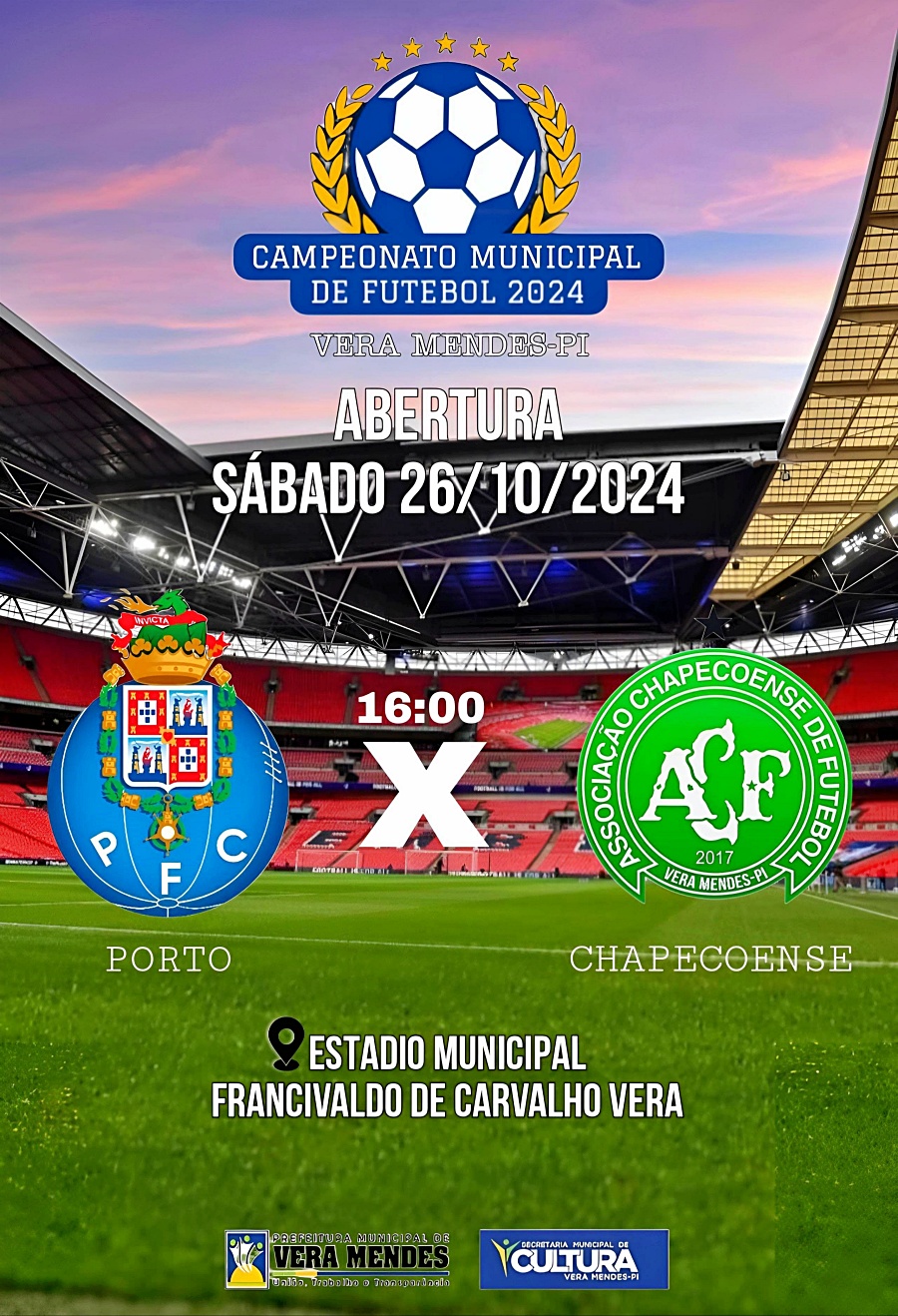 A Prefeitura Municipal de Vera Mendes — PI, gestão “União, Trabalho e Transparência”, do prefeito Dr. Carlim, por meio da Secretaria de Cultura e Esportes, anunciou oficialmente a realização do Campeonato Municipal de Futebol Amador — edição 2024.