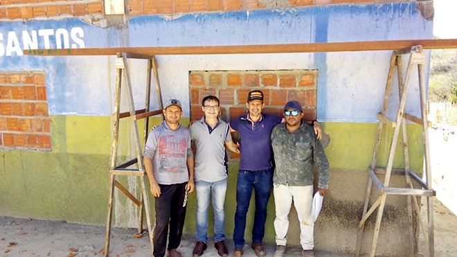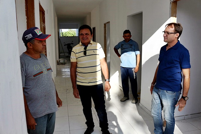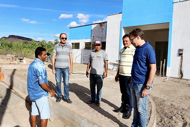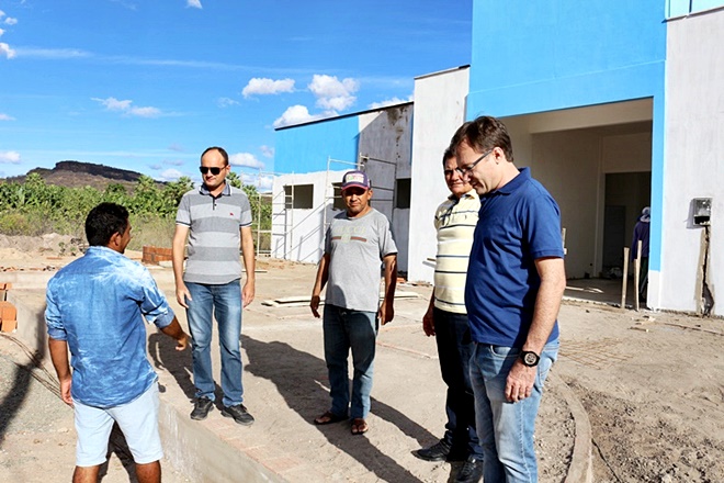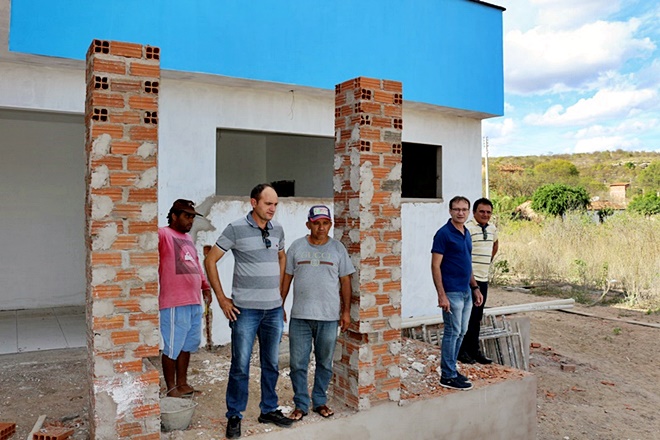 À tarde, ao lado dos vereadores Rivaldo Carvalho, Nonato Apolônio e José Juvaldi (Didi), o prefeito esteve no povoado Porteiras, onde visitou as obras de construção de uma nova, ampla e moderna Unidade Básica de Saúde.