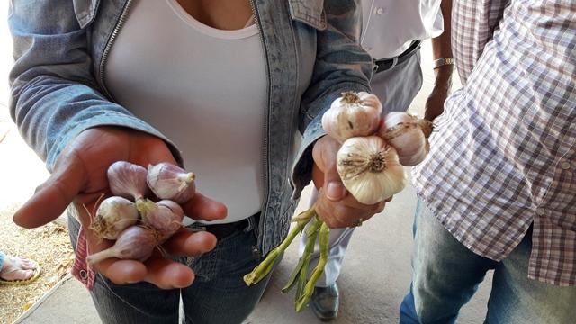 A Primeira Dama a professora da UESPI fez uma comparação de como é um alho plantado sem acompanhamento Técnico e com esse acompanhamento a diferença é enorme.