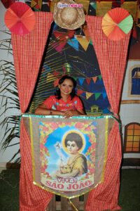 Em seguida, o aluno Victor Antomary apresentou um poema autoral sobre o São João, exaltando a fé, o fogo simbólico da fogueira e a alegria típica dessa época do ano.