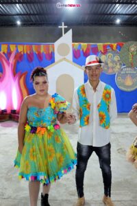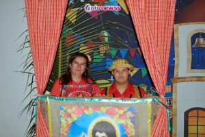 Outro momento de destaque foi o Concurso de Rei e Rainha do Arraiá, conduzido pela professora Nívea, que teve como vencedores o casal Raquel e Leonel.