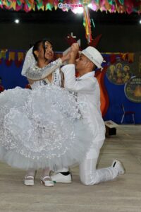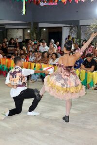 Em um gesto de inclusão e sensibilidade, o evento também promoveu o Forró da Inclusão, protagonizado pelo aluno José Valdisson, que dançou ao lado da professora Vitória Letícia. A apresentação emocionou o público ao transmitir uma importante mensagem sobre acolhimento, respeito e valorização das diferenças.