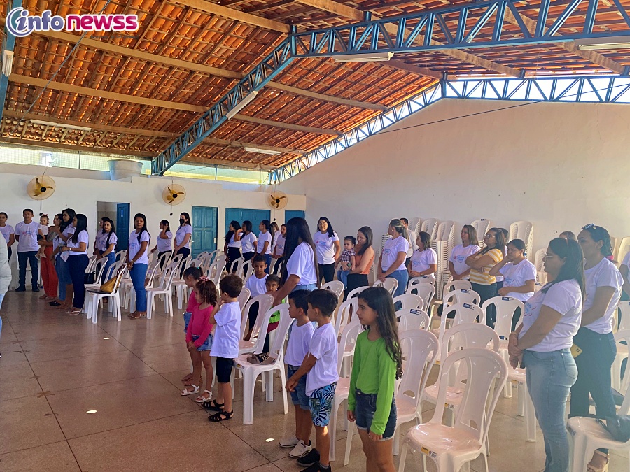 Em seguida, um grupo de crianças atendidos Centro de Referência de Assistência Social — CRAS, e acompanhadas pelo Serviço de Convivência e Fortalecimento de Vínculos — SCFV, realizaram uma apresentação musical.