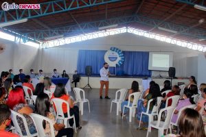 Durante a abertura, realizada nesta última segunda-feira, dia 1 de agosto, na Creche Proinfância Ananias Maria de Alencar, a nutricionista Auriléia Paiva, ministrou uma palestra com os diretores, coordenadores, secretaria, professores, auxiliares de sala, monitores de pátio, merendeiras e auxiliar de serviços (limpeza), abordando o tema “os desafios e a execução no Pnae na creche”.