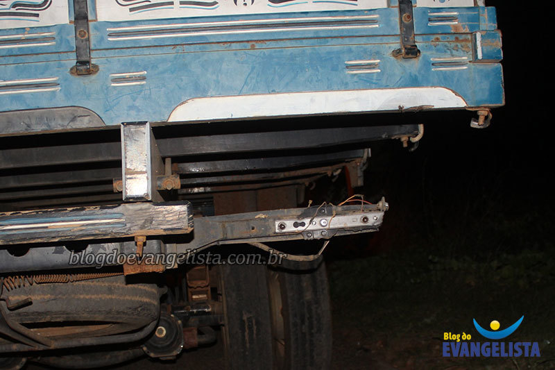 A motocicleta teve danos na sua parte da frente e o caminhão teve a luz vermelha de freio atingida e quebrada.