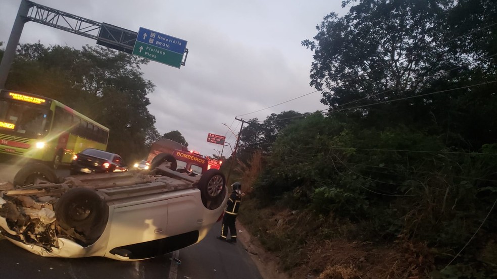 Um homem de 32 anos perdeu o controle da direção, bateu em um poste de iluminação e capotou o carro na BR-343, na rotatória da Avenida Joaquim Nelson entre as Zonas Leste e Sudeste de Teresina por volta de 5h20 da manhã desta terça-feira (20).