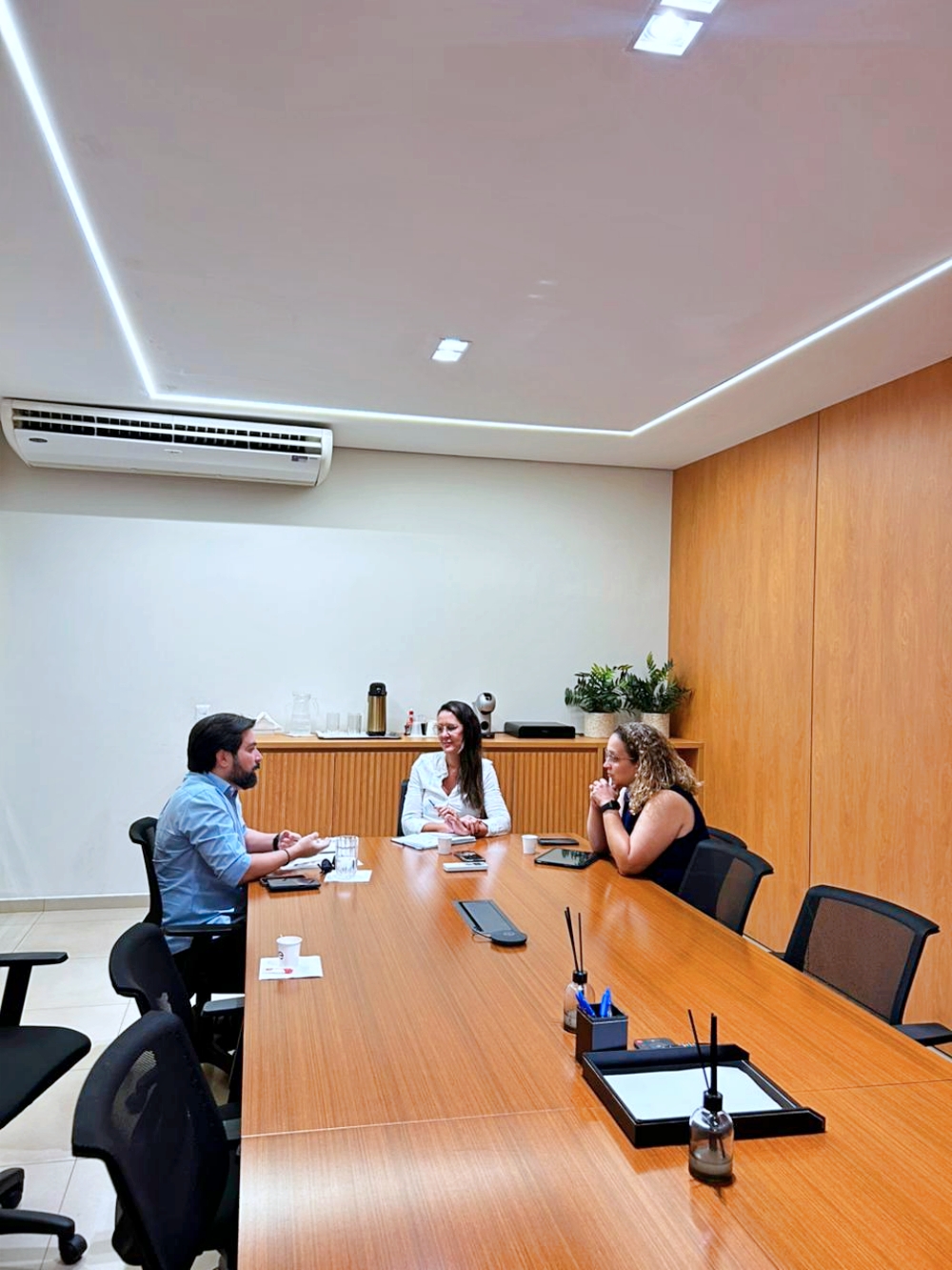 Durante a visita, o prefeito se reuniu com representantes da concessionária, entre elas as diretoras Flávia e a Bia, para tratar de demandas importantes do município relacionadas ao abastecimento e saneamento básico. Na pauta, foram apresentados três ofícios encaminhados pela gestão anterior, solicitando melhorias no sistema de água da cidade.