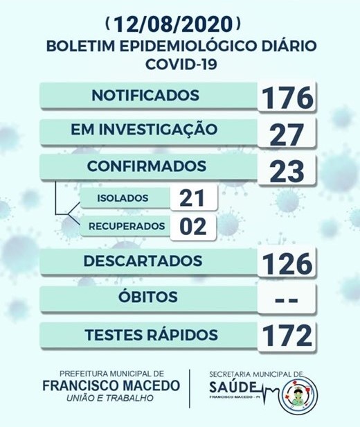 Em Francisco Macedo, atualmente com 23 casos confirmados, 2 curas clínicas, e 27 em investigação a gestão municipal adotou uma série de medidas, através de decretos municipais, proibindo aglomerações, cancelando eventos, suspendendo atividades não essenciais e aulas presenciais, além da adoção do Lockdown e do Toque de Recolher. Estas medidas estão sendo importantes para frear o número de casos no município.