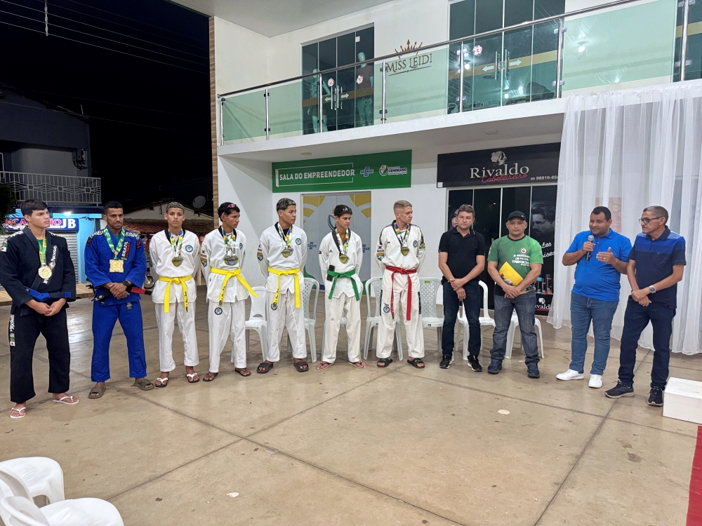 O prefeito Jaillson Campos recebeu com festa, na noite desta terça-feira, 03 de junho, no pátio do Centro Comercial, os atletas que representaram com excelência o município no Campeonato Brasileiro Regional Nordeste de Taekwondo 2025, realizado no último final de semana, no estado do Maranhão.