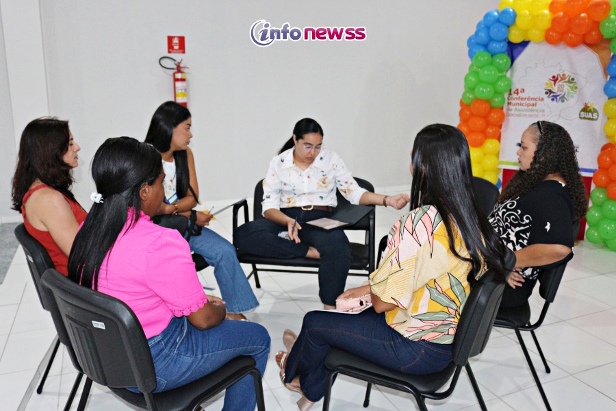 Após a palestra, os participantes foram divididos em grupos de trabalho para discutir os cinco eixos temáticos propostos pelo Conselho Nacional de Assistência Social; universalização do SUAS: Acesso integral com equidade e respeito às diversidades; aperfeiçoamento contínuo do SUAS: Inovação, gestão descentralizada e valorização profissional; integração de benefícios e serviços socioassistenciais. Fortalecendo a proteção social, segurança de renda e a inclusão social no SUAS; gestão democrática, informação no SUAS e comunicação transparente; fortalecendo a participação social; sustentabilidade financeira e equidade no co-financiamento do SUAS.