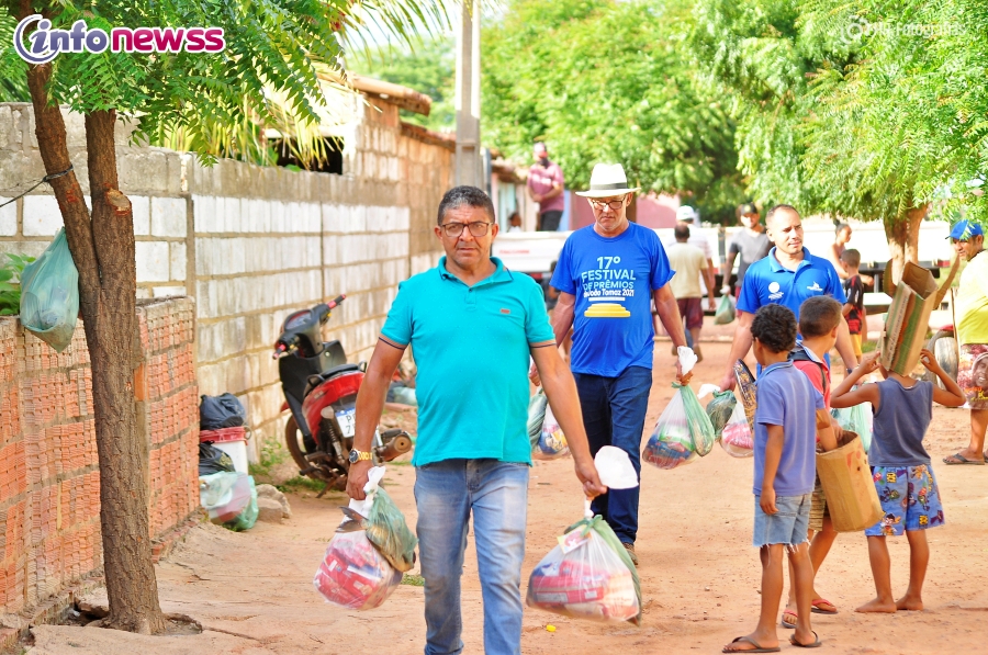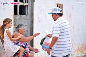 No ato, cada família foi beneficiada com uma cesta básica, composta por 02 quilos de arroz, 01 quilo de açúcar, 01 pacote de café, 01 sardinhas, 02 unidades de massa de milho, 02 pacotes de macarrão, 01 quilo de açúcar 01 pacote de cream cracker, além de 1,5 kg de peixe.