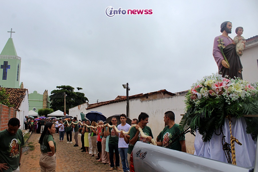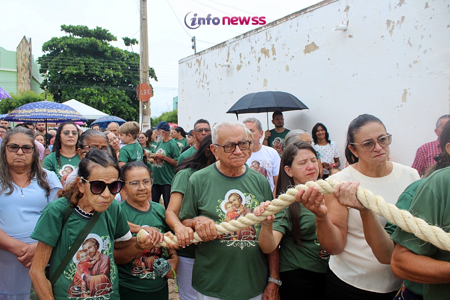 “Foram dez dias intensos de muita fé e devoção, iniciados com uma grande festa que contou com a presença da querida Aline Brasil, e encerrados hoje de maneira histórica, com a realização, pela primeira vez, do Círio de São José, seguido da Missa de encerramento. Fomos verdadeiramente agraciados por São José, que nos enviou uma chuva abençoada, cheia de graças e simbolismos, renovando nossa esperança e fortalecendo nossa fé. A corda do círio, que carregamos juntos, representa um momento profundamente significativo. Ela não é apenas um objeto, mas um elo que nos conecta com a eternidade, com o céu, e também uns com os outros. Por ser pesada, a corda precisa ser carregada por várias mãos, o que nos ensina uma grande lição: a importância da união, da solidariedade e do apoio mútuo. Assim como a corda do círio, a vida também nos convida a caminhar juntos, compartilhando os fardos e as alegrias, sempre unidos pela fé e pelo amor. Que São José, nosso padroeiro, continue nos inspirando a viver em comunhão, fortalecendo nossos laços e nos guiando em nossa jornada de fé. Que este momento fique gravado em nossos corações como um símbolo de esperança e união para toda a comunidade.” Disse o Padre.