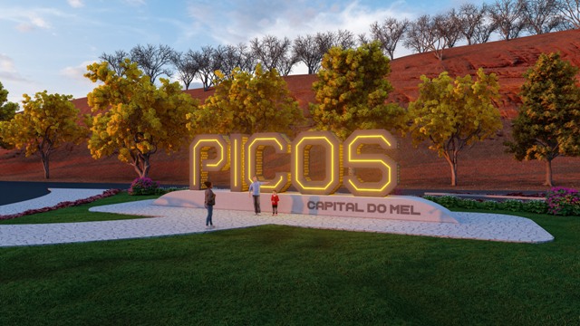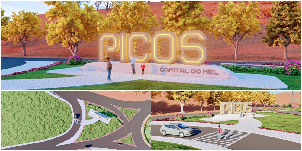 Nas imagens em 3D, do projeto apresentado pelo gestor, consta ainda que a revitalização da rotatória contemplará a construção de um letreiro com o nome de Picos “Cidade do Mel”, um projeto de jardinagem e um passeio público.