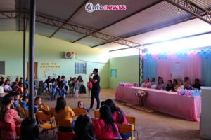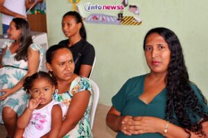 Em seguida, o fonoaudiólogo da Secretaria de Saúde, Dr. Wenzo Rocha, conduziu uma roda de conversa com as gestantes, abordando o tema “A importância do desenvolvimento da linguagem na primeira infância”. Ele destacou como a estimulação adequada desde os primeiros anos de vida é crucial para o desenvolvimento cognitivo e social das crianças.